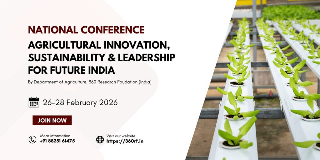 The National Conference on Agricultural Innovation, Sustainability & Leadership for Future India 2026 (NCAISLFI2026) is a national-level academic forum bringing together agricultural scientists, academicians, policymakers, industry experts, students, and progressive farmers from across India. Scheduled for 26-28 February 2026, the two-day conference will provide a platform to discuss emerging innovations, climate-resilient and sustainable farming systems, agri-entrepreneurship, digital and precision agriculture, and inclusive rural growth. The event aims to strengthen collaboration among research institutions, industry, extension systems, and farming communities while promoting leadership development for the future of Indian agriculture. The conference is organized by the Department of Agriculture, 360 Research Foundation, and will be held at the Mathura Regional Centre.